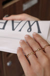 Curved ring, adjustable and gold-plated with 3 microns. All our jewelry is water-resistant, durable, does not tarnish, and is hypoallergenic.