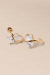 Gio earrings composed of a pear-shaped zircon and a rectangle.